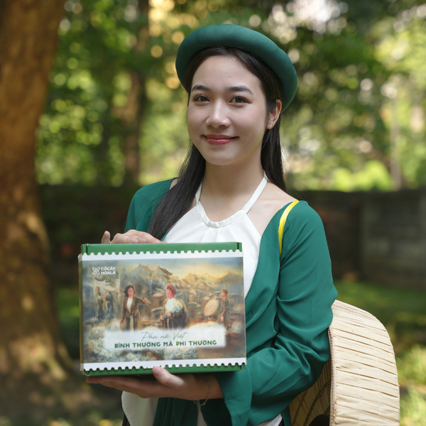 Lần đầu tiên, Cỏ Cây Hoa Lá hợp tác cùng họa sĩ màu nước Đoàn Quốc để đưa một tác phẩm nghệ thuật vào hộp quà. Đó là sự trân trọng: trân trọng cái đẹp, trân trọng ký ức, và trân trọng người phụ nữ Việt – những người mà trong từng giai đoạn lịch sử, dù trong bếp lửa gia đình hay trên hành trình ngoài xã hội, vẫn luôn bền bỉ, âm thầm nhưng rực rỡ theo cách riêng của họ.