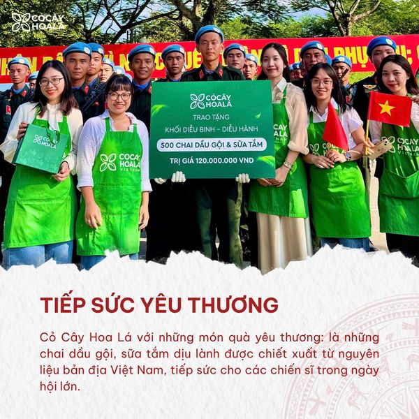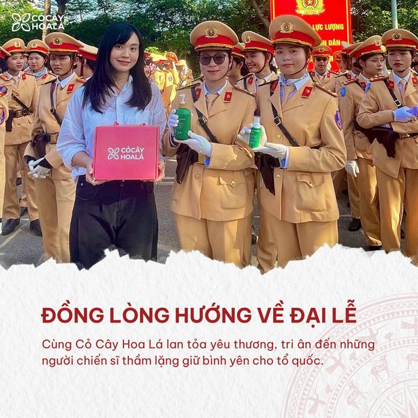 Ngày 2/9 luôn là một cột mốc lịch sử thiêng liêng đối với mỗi người dân Việt Nam. Năm nay, trong không khí hân hoan kỷ niệm 80 năm Quốc khánh nước Cộng hòa Xã hội Chủ nghĩa Việt Nam, Cỏ Cây Hoa Lá tự hào khi được đồng hành cùng các chiến sĩ trong sự kiện trọng đại này. Thật vinh dự khi được mang đến 500 sản phẩm chăm sóc cá nhân trị giá 120 triệu đồng dành tặng cho các chiến sĩ.
