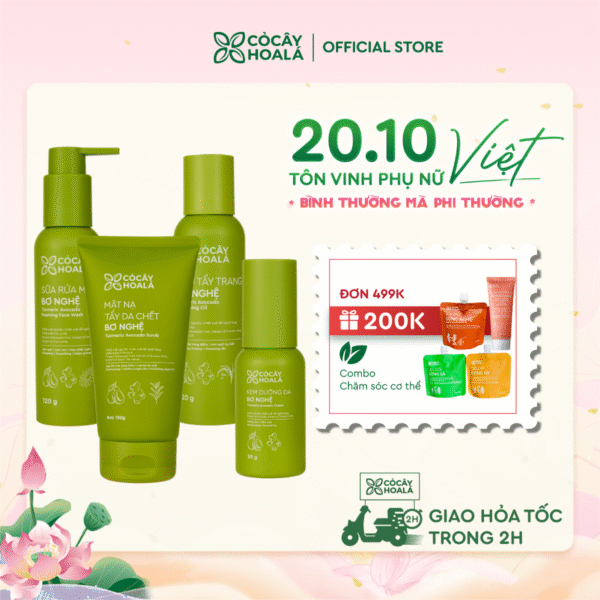 Combo Bơ Nghệ 4 Bước Dưỡng Ẩm Phục Hồi Cỏ Cây Hoa Lá