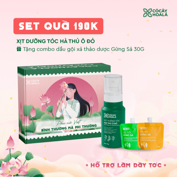 Set 1: Xịt tóc Hà Thủ Ô – Tặng cặp Gội Xả Gừng Sả 30g – Hộp quà “Bình Thường Mà Phi Thường”